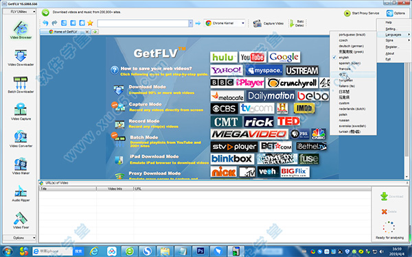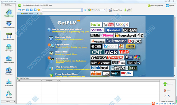 GetFLV 15是一款在原版本基础上经过更新的FLV视频下载工具,在旧版本软件上经过升级,在功能和性能上得到改进以及优化,使其软件功能性更加完善,从而给用户带去便利,完善的功能得到更好的利用。与前版本相比较,它支持管理,转换,修复和播放FLV视频文件等功能,从任何视频托管网站,轻松地转换视频到你的iPhone或其他设备上播放。该软件集视频播放、转换管理以及资源下载三大功能为一体,可以轻松地帮助用户在各大网络媒体平台下载flv格式的网络视频。除此之外,对于你想要的视频格式它可以轻松的转换处理,当你看电影看到喜欢的画面以及听到好听的歌也可以使用这个直接进行抓取,还可以帮助用户轻松从优酷、爱奇艺、某管、Hulu、MTV等国内外各大视频网站中下载FLV格式的网络视频。
