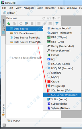 2、或者在Database视图中展开绿色的+号,添加数据库连接