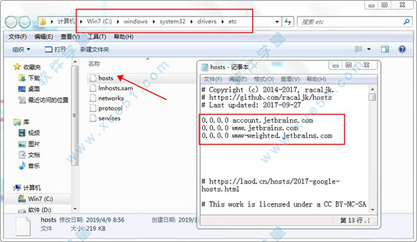 1、在键盘上按住win+R快捷键输入c:\windows\system32\drivers\etc,用记事本打开hosts文件后,将以下代码内容输入:
