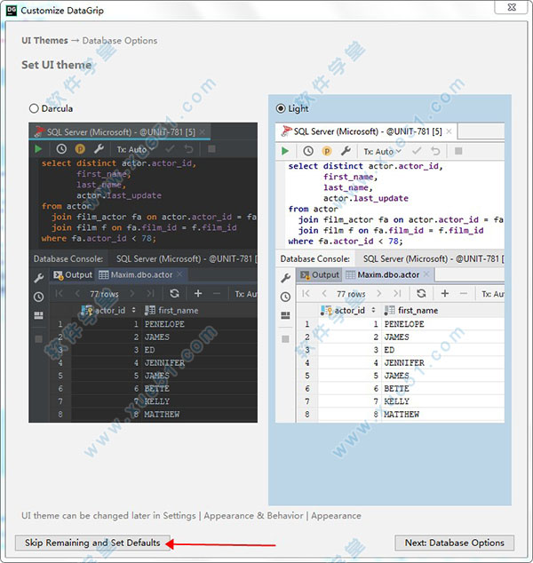 4、弹出界面,点击skip remaining and set defaults跳过设置默认