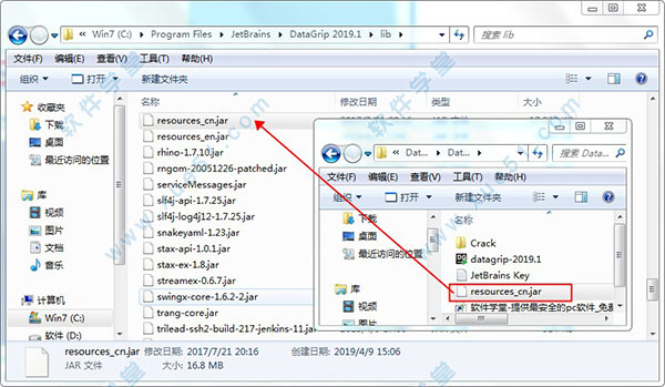 1、软件界面为英文版,退出软件,接下来对软件进行汉化,进入软件安装路径lib文件夹,然后再次回到软件安装包内,将汉化补丁resources_cn.jar复制到其软件安装路径lib文件夹内