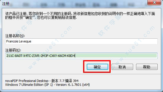 9、安装到这一步就完成了,之后你就可以开始注册,把注册名称: Francois Leveque