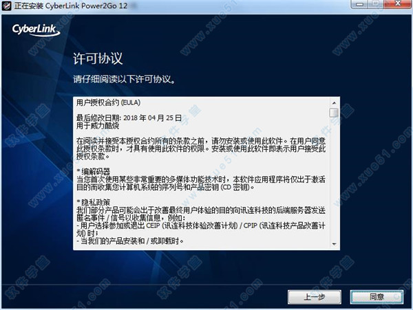 3、来到用户许可协议界面,直接点击【同意】进行下一步操作。