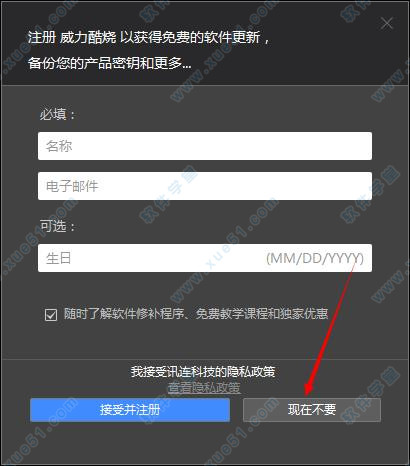 8、弹出提示需注册直接无视,点击【现在不要】。