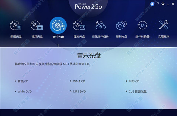威力酷烧12白金版是该软件12系列的加强版,在此版本中用户将体验到无与伦比的光盘刻录速度与质量,更加美观大方的界面可令你耳目一新。其英文名称为Power2Go,作为一款很棒的CD/DVD刻录工具,它配备了先进的光盘备份实用程序。它支持蓝光、DVD制作,还具有一些音频编辑功能。在这款全新的威力酷烧12白金版中拥有一个非常先进的燃烧引擎,可以让您编写音频和视频内容。它还允许您执行不同的其他任务,如擦除和复制光盘、安装虚拟驱动器和转换音频文件。同时它也是唯一一款可以同时满足刻录、备份、转档三大需求的全方位影音保存解决方案,拥有数据光盘、视频光盘、音乐光盘、图库光盘、在线媒体备份、复制光盘、媒体转换器和实用程序八大功能,能够轻松的实现制作蓝光视频光盘、刻录蓝光和AVCHD视频光盘、制作音乐光盘、256位光盘加密刻录、制作Windows系统还原光盘等功能,是用户数据及光盘刻录备份的最佳选择。但由于版权原因该软件不支持免费使用,不过正所谓道高一尺魔高一丈,小编这里特意带来了