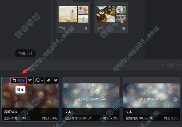 8、更高级的制作方法:加入其他模板中好看的场景,充分利用好看场景让相册视频更好看。(注意:要成为会员才可以添加其他模板的场景)