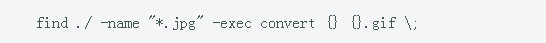 find ./ -name "*.jpg" -exec convert {} {}.gif \;