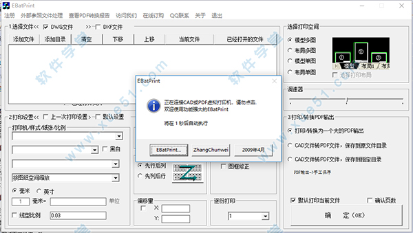 ebatprint是由快刀软件工作室研发的一款批量打印和转pdf文档的软件。它支持无人值守式打印或转PDF,支持全自动图框识别功能,能按顺序批量将cad图纸转换为pdf、jpg、png等格式,帮助用户快速实现高质量cad图片打印。从事CAD设计工作的朋友们应该深有体会,在工作中我们往往需要批量打印dwg图纸,起初我们只能一张张打开dwg图纸,然后点击打印,再选择窗口打印、框选图框,然后才能够成功打印,每一张图纸都要这样操作一次的方式实在是效率太低了,这样操作,只是打印一张两张还可以,多了的话可就费时费力了,而它就是一款非常实用的CAD批量打印软件,ebatprint13.2支持无人值守式打印或转PDF、支持全自动图框识别功能、还能够按顺序批量将CAD图纸转换为PDF、jpg、png等格式文件,真的是一举两得!