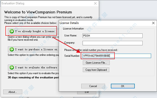 5、安装完成后运行软件,将ViewCompanion Premium注册码复制到注册框中即可