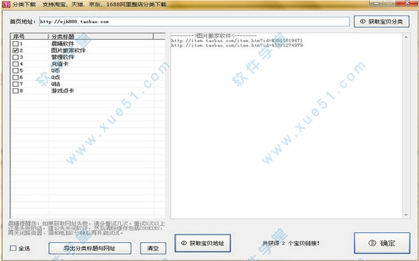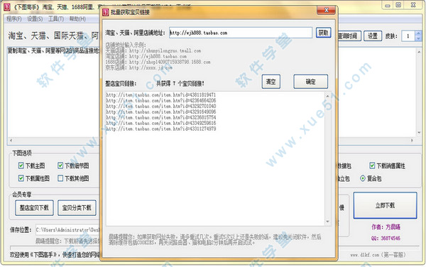 4、能将别人或者自己淘宝、天猫、拍拍、阿里巴巴等平台网店的所有或者部分商品一键轻松下载到本地电脑上
