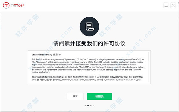 1、下载数据包并解压,双击TrackOFF.exe选择中文然后点击“确认”