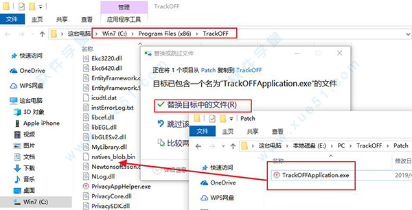 5、安装完成,将破解补丁复制到安装目录下替换原文件即可。默认安装目录:C:Program Files (x86)TrackOFF