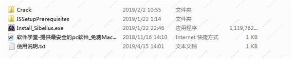西贝柳斯2019中文破解版文件包,并将其解压出来可得到如下文件。