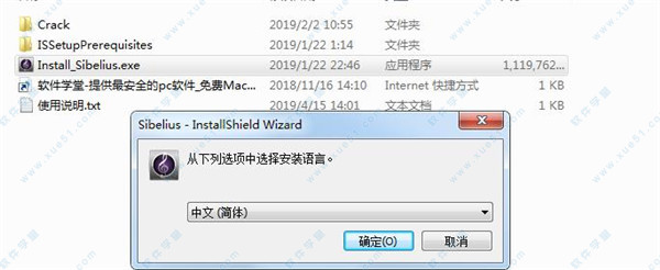 2、接着双击“Install_Sibelius.exe”主程序运行,在弹出的语言栏选项中选择【简体中文】,然后点击“确定”。