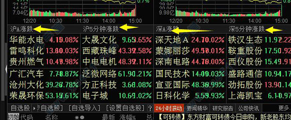 (1)展示沪深市场涨跌排名情况以及沪深市场5分钟涨跌排名情况;