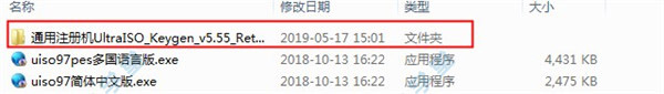 2、然后回到软件安装包,打开通用注册机UltraISO_Keygen_v5.55_Retail文件夹