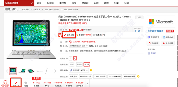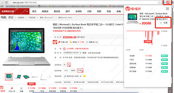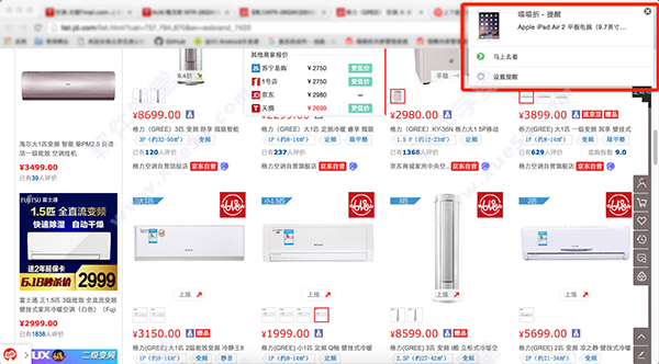 2)在京东列表页或者搜索结果页,需要将鼠标hover"上涨”图标处,可以查看每个商品的历史价格曲线。