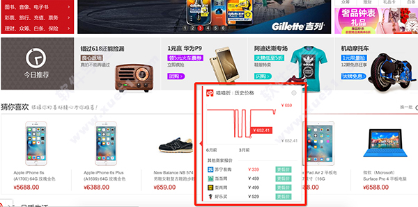 3)在京东的首页,鼠标hover单个商品依旧可以查看商品的历史价格曲线