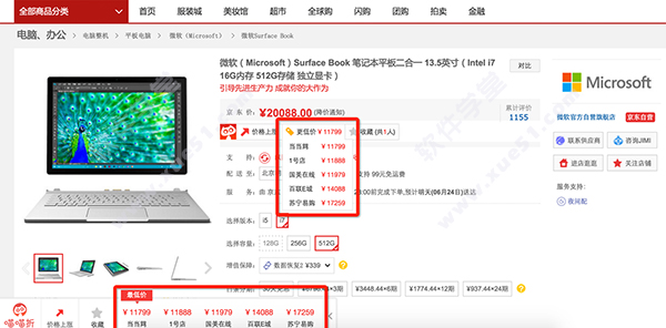 1)以京东为例,京东商品详情页,在商品价格下"浮动价格”和”比价工具条"处均可以查看其他网站的价格