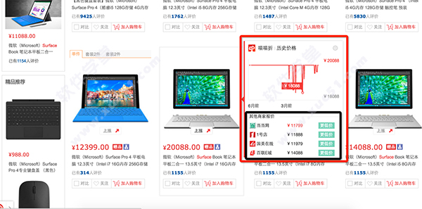 2)在列表页以及搜索结果页,可以查看该商品的其他网站的价格