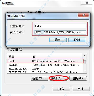 (注意原来Path的变量值末尾有没有;号,如果没有,先输入;号再输入上面的代码),填写好后点击“确定”。
