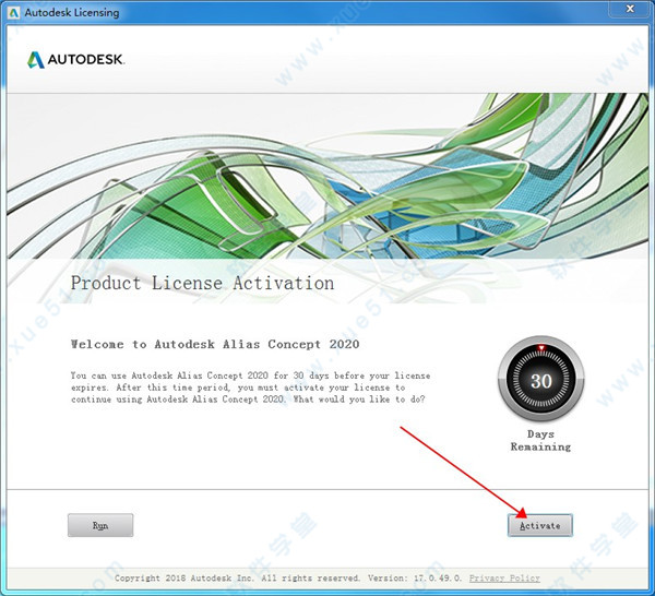 9、显示仅有30天的使用时间别管它,点击【Activate】开始激活。