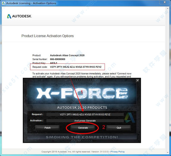 14、然后现在就可以启动软件了,这时需重复下第二步至第三步的破解步骤,然后将界面中的申请号复制到注册机Request选项中,并点击【Generate】生成激活序列号。
