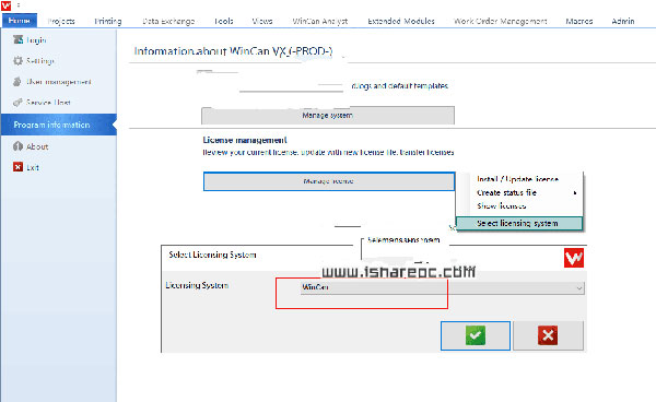 1、软件安装完成后,打开软件,依次选择Home——>Manage License——>Select Licensing system,下拉选择软件,点击OK