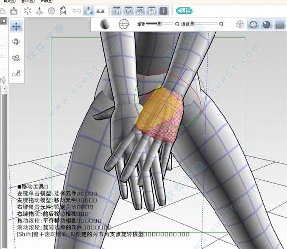 2、点击操作栏的操纵器(Ctrl+H)按钮,即可开始对人体进行各种调整