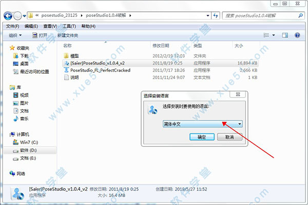1、运行[Saier]PoseStudio_v1.0.4_v2.exe安装程序进行软件安装,弹出界面,安装语言选择简体中文