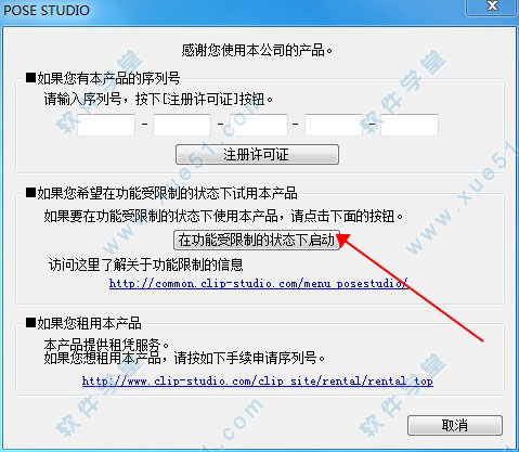 5、运行PoseStudio_FL_PerfectCracked.exe,使用功能受限制的状态下启用