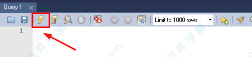 4、进行查询的时候,先将SQL写好,选中,然后点击上方的闪电图标即可;