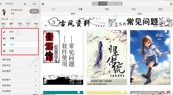 四大板块,你可以选择写作,阅读别人的文稿,还可以征稿,