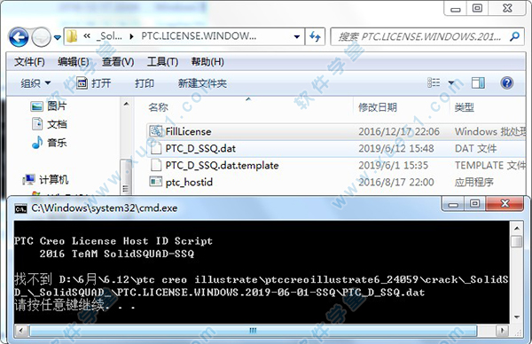 2、打开PTC.LICENSE.WINDOWS.2019-06-01-SSQ文件夹,双击运行FillLicense.bat,自动生成许可证文件PTC_D_SSQ.dat