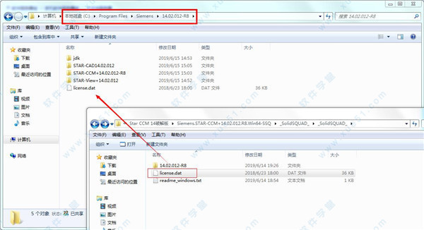 3、接着将_SolidSQUAD_文件夹下的“license.dat”许可证文件也复制到【C:\Program Files\Siemens\14.02.012-R8】路径下。