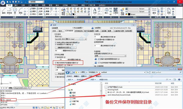 移动备份文件命令可为BAK备份文件设置一个单独的路径,方便后期统一处理和删除,保证图纸目录下不产生多余文件。