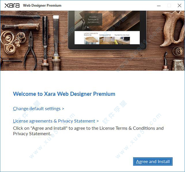 1、下载数据包并解压,双击“Xara_Web_Designer_Premium_en-II_setup.exe”点击“agree and install”