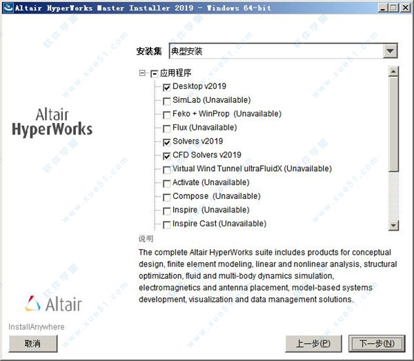 Altair HyperWorks 2019中文破解版文件包,将其解压出来可得到安装源程序与相应的破解文件。