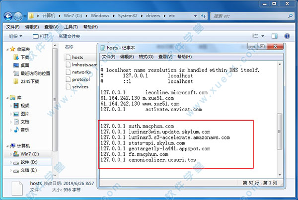 6、软件安装完成后,在你的计算机电脑Hosts文件添加以下代码屏蔽联网验证: