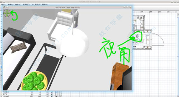在使用3D预览的时候可以选择鸟瞰模式和参观者模式。鸟瞰模式即从空中查看模型,y可以查看全局的布置。上图即鸟瞰模式效果图,你可以通过鼠标或者键盘旋转模型,也可以通过滚轮将模型放大和缩小。