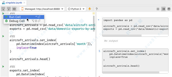 Jupyter笔记本非常适合帮助您探索和交互数据。使用PyCharm,Jupyter笔记本现在更容易使用,因为您可以在IDE中快速运行和调试笔记本中的单元格。当然,许多来自浏览器内笔记本的热键也可以在PyCharm中使用。例如,使用Shift + Enter运行突出显示的单元格,然后选择下面的单元格。