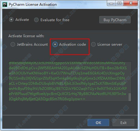 9、稍后会弹出一个激活界面,选择【Activation code】输入激活码。