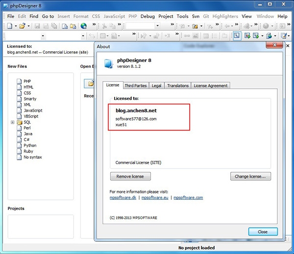 phpdesigner 8注册码是用来激活破解一款非常好用的PHP开发软件的激活注册码,也可以说是序列号。我们知道这款软件由于涉及版权问题,需要收费购买使用,试用版只能免费试用一段时间,而且有些功能是被限制使用的,对于经济有限的用户来说,花钱去买注册码激活软件会增加他们的经济负担,给他们在使用软件方面造成了极大的困扰。无需困扰,小编给广大用户带来了phpdesigner 8软件激活注册码下载,通过使用该注册码进行软件注册激活,授权激活软件后用户可以无功能限制、免费使用软件。本文提供使用教程可供大家进行软件破解操作,大家可以参照具体步骤进行操作使用。