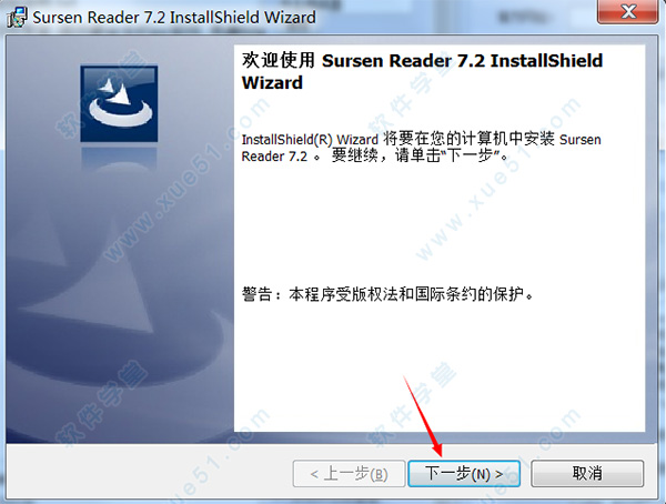 1、在本站下载好安装包,双击运行“Reader72Setup.exe”程序,弹出软件安装向导,点击“下一步”开始安装;