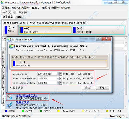 热调整(无需重启系统)扩大或减小NTFS分区, 重新分配自由空间