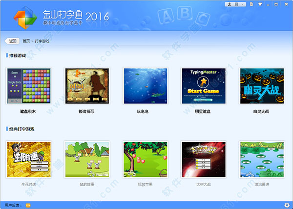 金山打字通2016绿色版是一款非常实用的打字软件,一些朋友平常的打字速度不是很快,这对以后从事IT方面的工作可能不是一个好处,不过如果这时候开始加以练习的话,应该是可以得到快速提升的。但是要想打字快,光靠自己胡乱的练习可能会花费很长的时间,所以小编为你推荐此款软件,能帮助你较快速的提升打字速度。并且此版本是专为不想安装可以直接使用的版本,并且免除广告弹出,不会有任何烦人的广告打扰,让你享受纯净体验。下载后解压可直接打开使用。它和以往版本一样,包含新手入门、英文打字、拼音打字、五笔打字等模式,还提供打字测试、打字教程、打字游戏、在线学习等板块功能,是为经典的一款打字练习软件。有了它以后,你只需多加练习,打字速度一定可以得到提升。有需要的小伙伴欢迎下载体验!