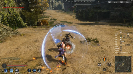 游戏中的战斗部分很硬核,耐力条、格挡等硬核动作游戏常见的设计都有。玩家们在战斗时,会进行诸多心理博弈,由于硬直的存在,几乎每一个小失误,都可能引发雪崩式的结果。当然,这只是在一对一的情况下,如果是多人的混战,各种突发情况接踵而至,考验玩家们的内容就更多了。