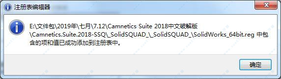 4、解压出_SolidSQUAD_.7z文件,根据自己的操作选择运行“SolidWorks_32bit.reg”还是“SolidWorks_64bit.reg”,在弹出的注册提示中点击是。