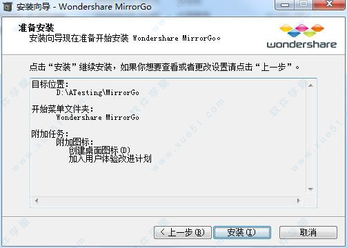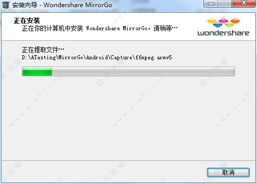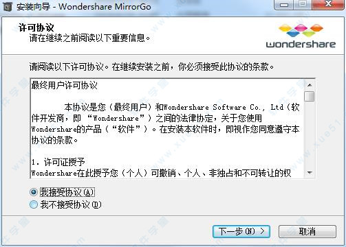 2、双击“Wondershare MirrorGo v1.9.0.exe”主程序开始安装,在语言设置中选择【简体中文】。