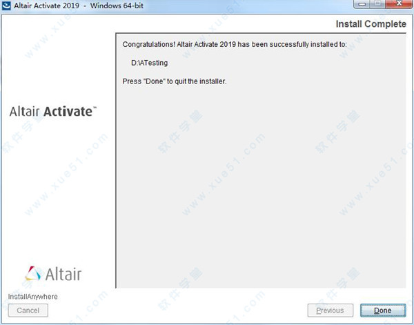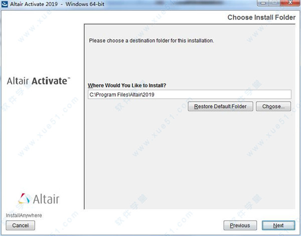 2、双击主程序“Altair.Activate.2019_win64.exe”开始安装,暂时没有中文支持默认英文即可。